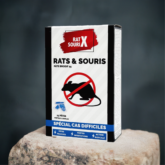 RatX SouriX Pâtes Bleues Brodif 25 – 150g – Appât Renforcé Anti-Rats et Souris – Cas Difficiles - Fabriqué en France